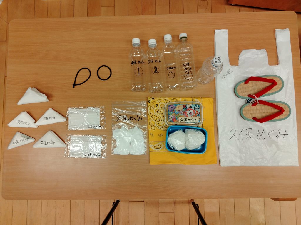 持ち物③・お弁当、ビニール袋、お茶が入ったペットボトルなど